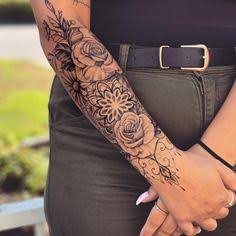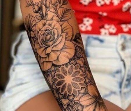 Las flores como las rosas son unos de los más pedidos como puedes ver lucen muy hermosamente en cualquier parte del cuerpo y no es la excepción en los antebrazos.