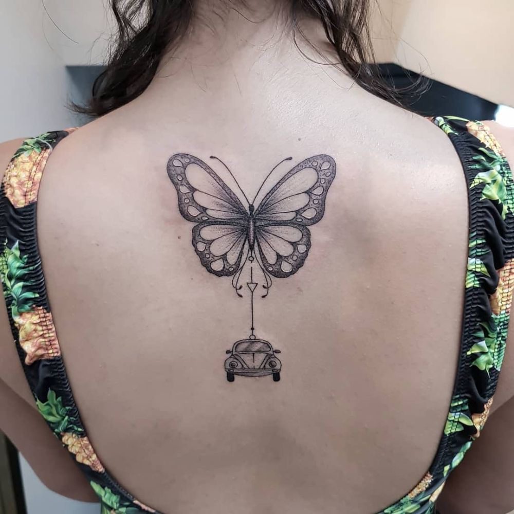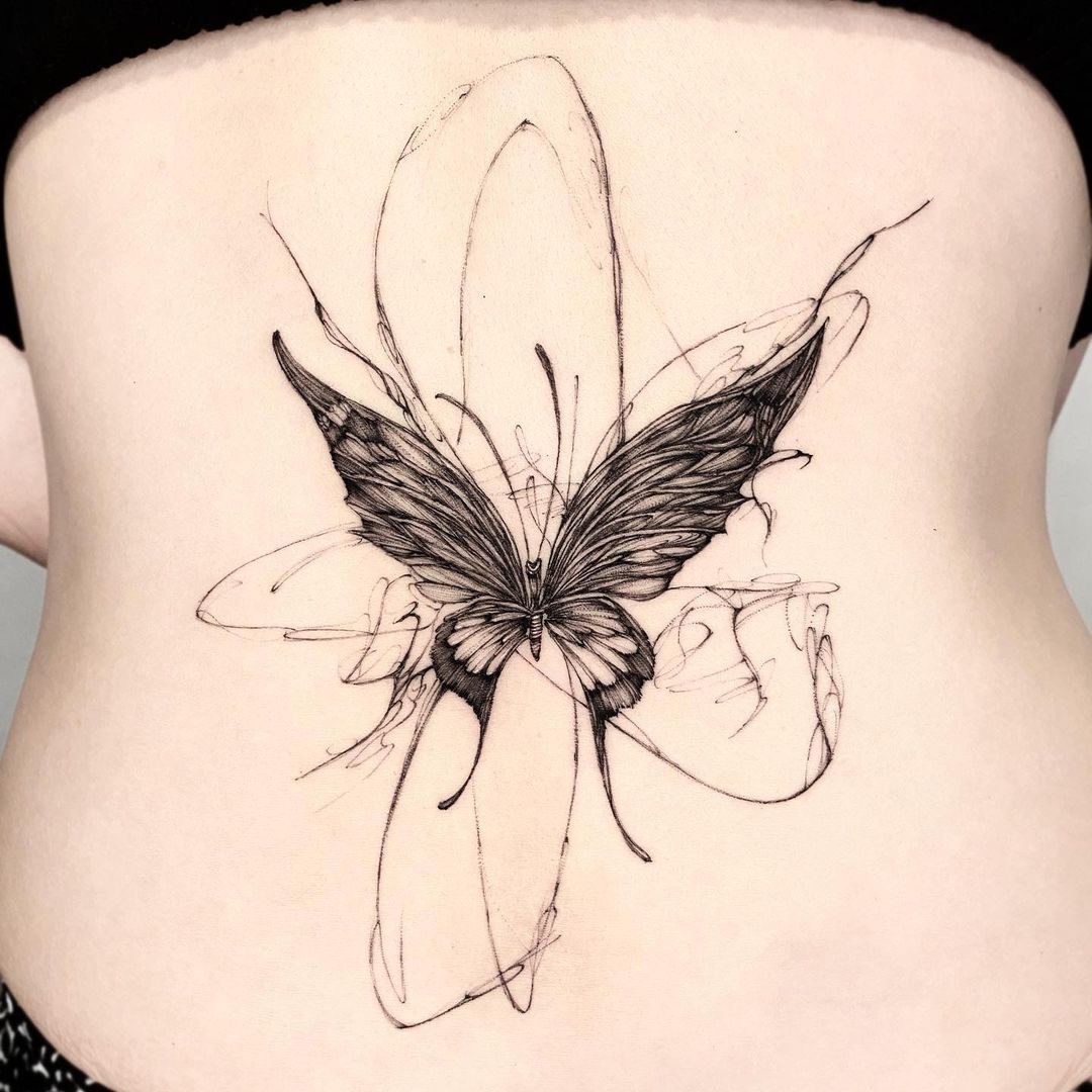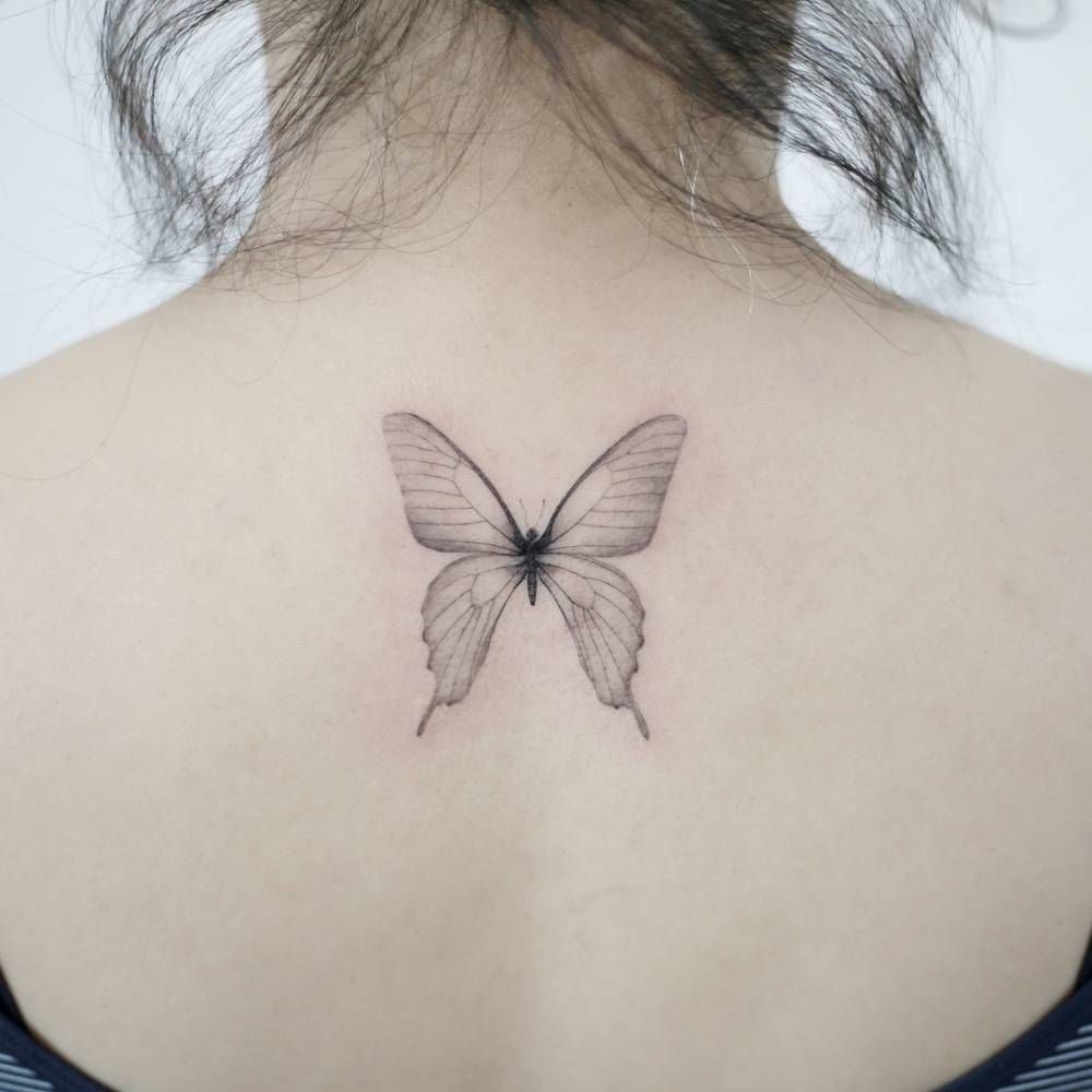 Su tamaño dependerá de tus gustos, pero el área de la espalda es ideal para tatuajes grandes e ideales para plasmar animales y una hermosa mariposa sin duda, se verá impresionante.