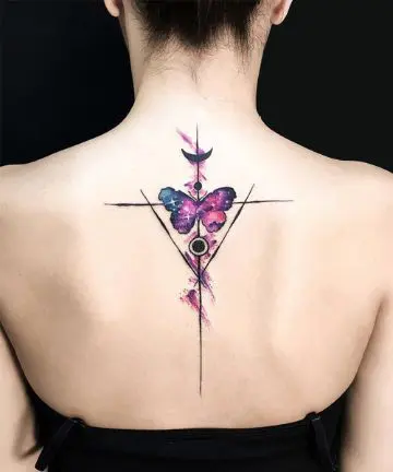 Puedes plasmarlas en tinta negra con profundidades y diversas texturas, como también agregarle algunos tonos coloridos para hacerla más llamativa y atrayente. Las mariposas en la zona de la espalda suelen verse muy sexys y atractivas, además de que es un área bastante amplia para brindarle más detalles.