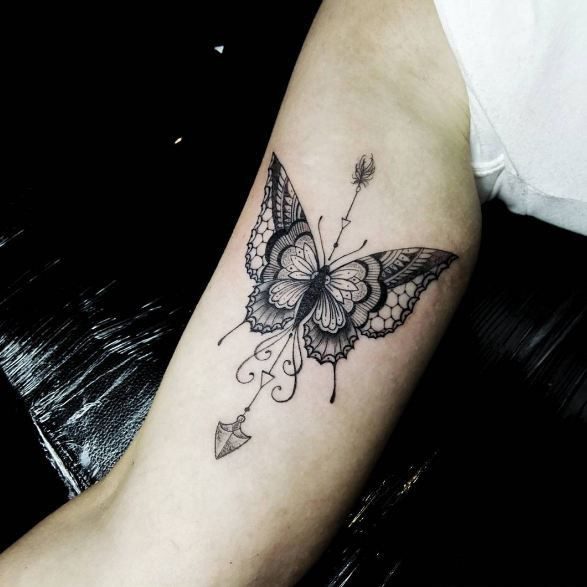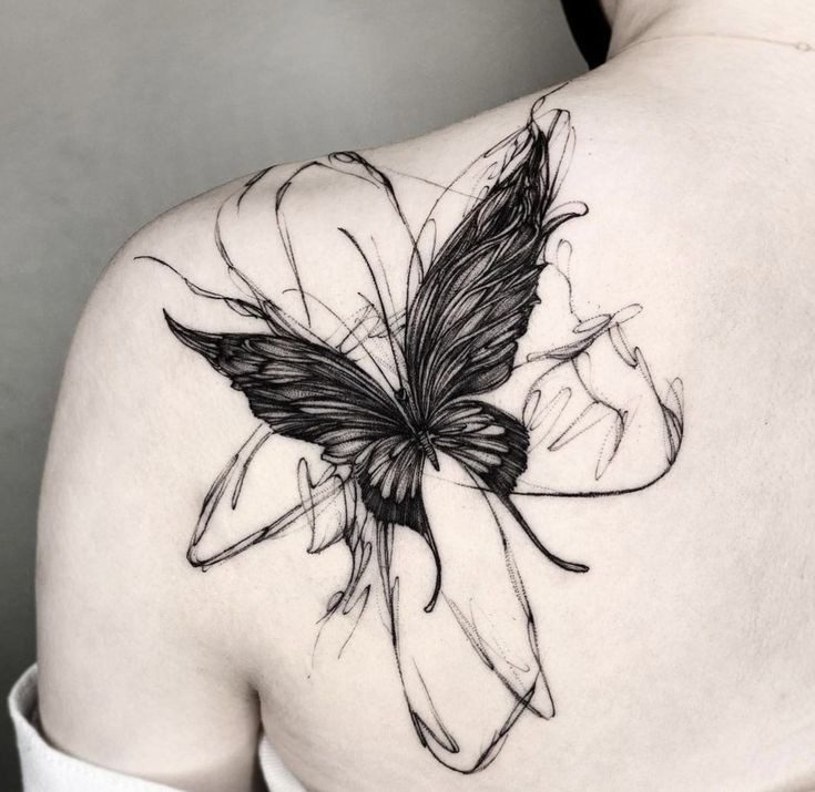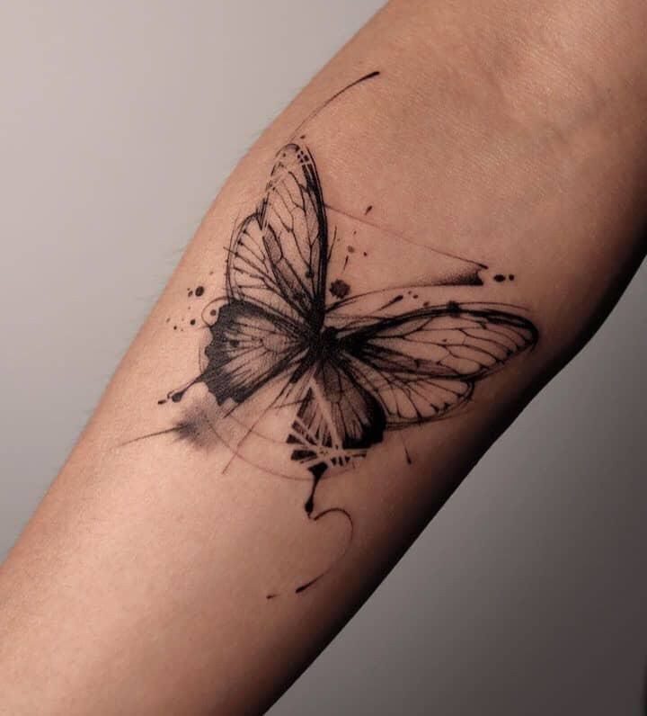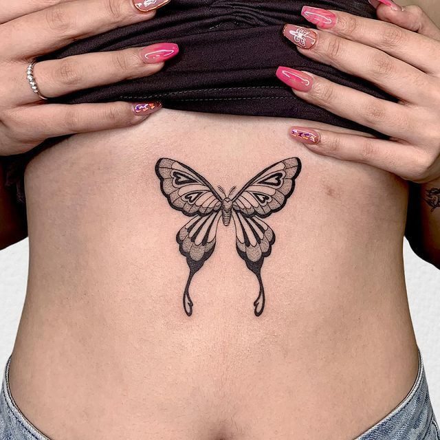 Bellas ideas de Tatuajes mariposa en tinta negra para mujer