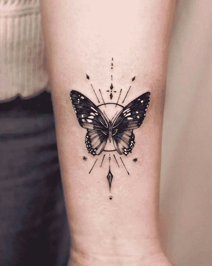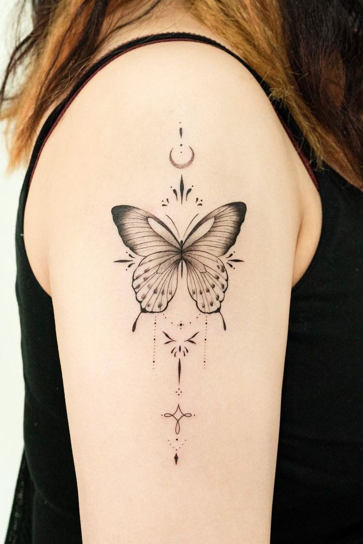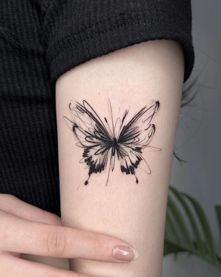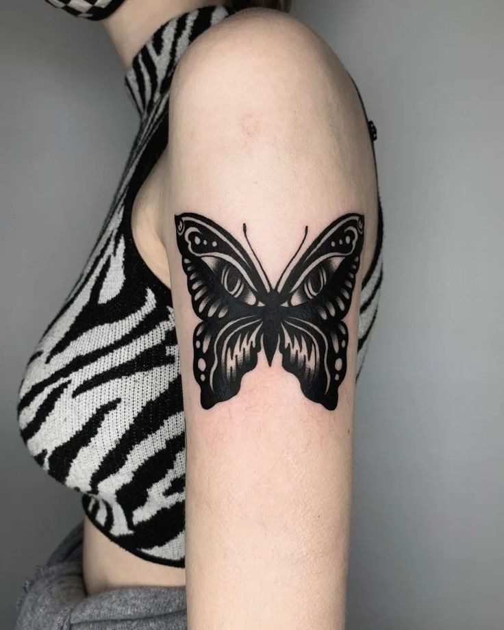 Los tatuajes de mariposas negras aportan una elegancia atemporal. A pesar de su color oscuro, transmiten una sensación de gracia y estilo. El contraste entre la sutileza de la mariposa y el tono oscuro agrega un elemento distintivo al diseño. El color negro de la mariposa puede representar la dualidad de la vida. Simboliza la oscuridad y los momentos difíciles, pero también sugiere la posibilidad de encontrar la belleza y la esperanza incluso en situaciones desafiantes.