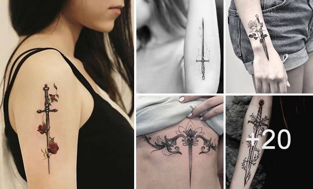 Diseños bellos de Tatuajes de espadas para mujeres