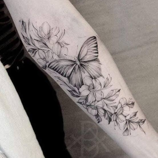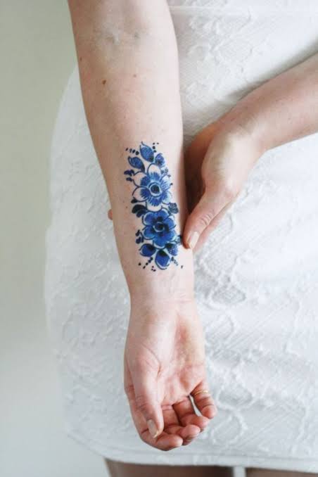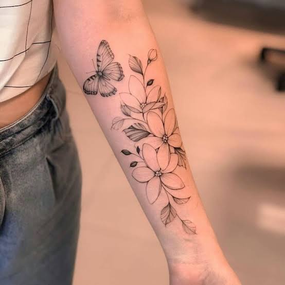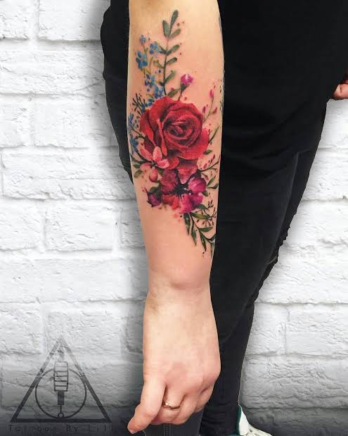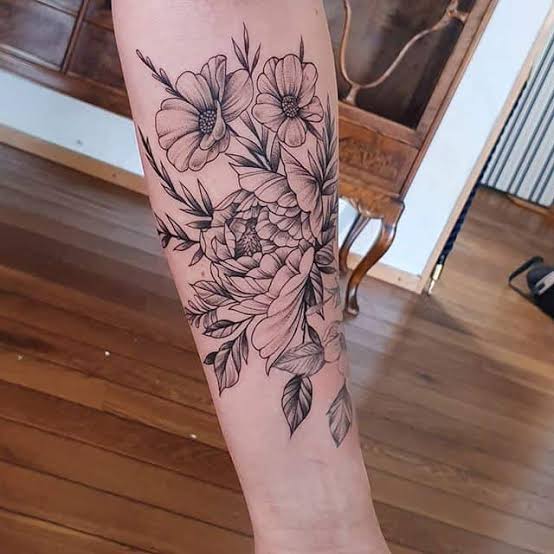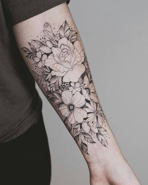 Tatuaje de flores en el antebrazo.