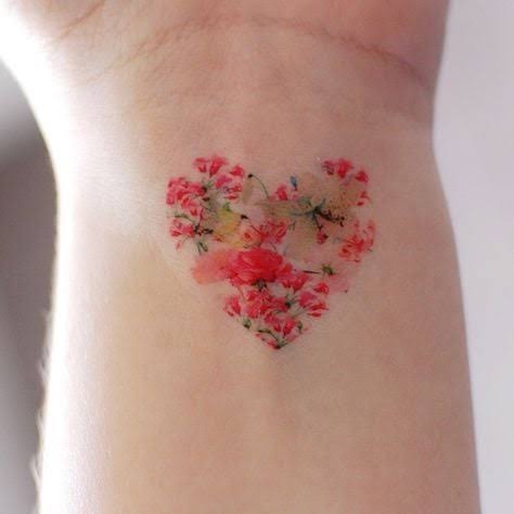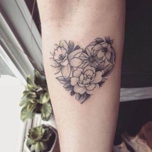 Tatuaje de flores con forma de corazón.