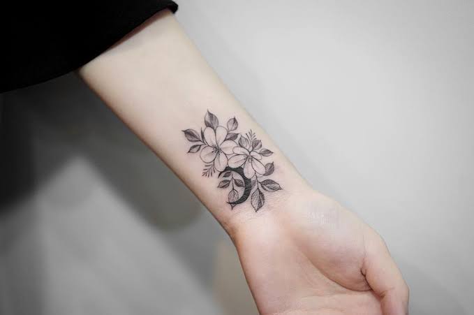 Tatuaje de flores minimalista en la muñeca.
