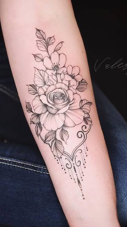 Este tipo de diseños es muy elegante y llamativo en las mujeres ya que la zona del antebrazo encaja muy bien con este estilo de tatuaje. Te podrá aportar una gran estética muy llamativa e imponente para los demás y sin dejar atrás la elegancia que suelen dar las flores.