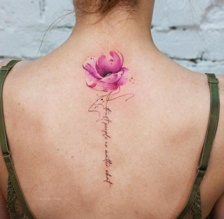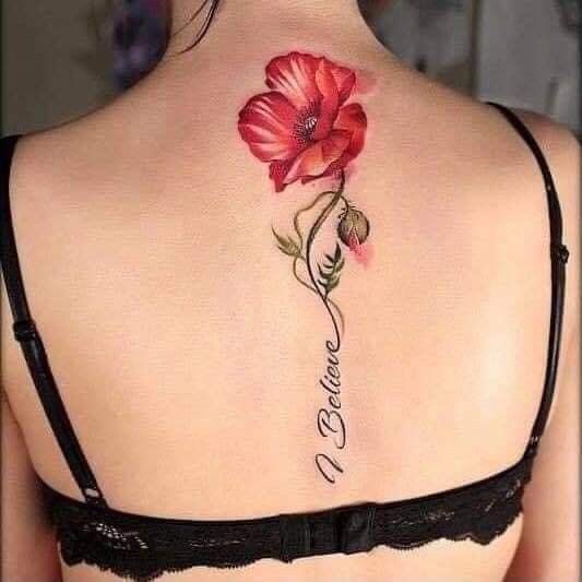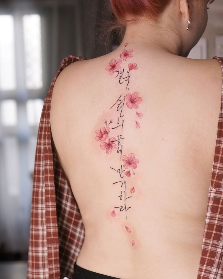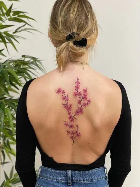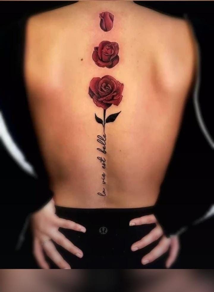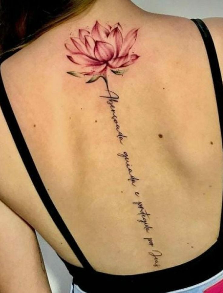 El arte en la columna vertebral ofrece un lienzo vertical que se adapta perfectamente a diseños elegantes y estilizados. Las mujeres optan por una amplia gama de diseños, desde delicadas flores hasta intrincados mandalas o frases significativas. Estos tatuajes se despliegan con gracia a lo largo de la columna vertebral, siguiendo sus curvas naturales, creando una estética visualmente impresionante.