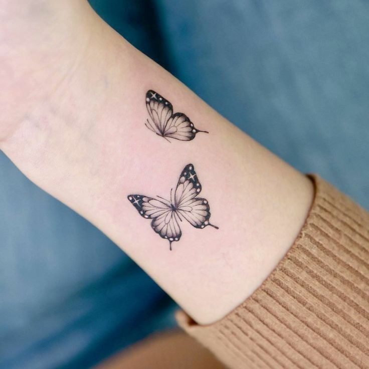 Los tatuajes de mariposas pequeñas son versátiles en términos de estilo y diseño. Puedes optar por un diseño minimalista y elegante con líneas finas y contornos suaves, o puedes agregar elementos adicionales como flores, estrellas o notas musicales para personalizar aún más tu tatuaje. Los tatuajes pequeños de mariposas también son excelentes para la experimentación con colores vibrantes o sutiles tonos pastel, lo que les permite destacar o mezclarse suavemente con tu piel.