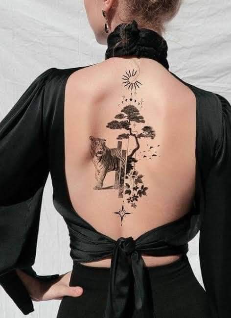 La elección de la espalda como ubicación para un tatuaje es una elección consciente y simbólica para muchas mujeres. Este lienzo en blanco ofrece un amplio espacio que puede ser ocultado o revelado según la elección de la persona. Además de su aspecto práctico, la espalda ofrece una amplia superficie para crear diseños intrincados y detallados, permitiendo que la expresión artística florezca.