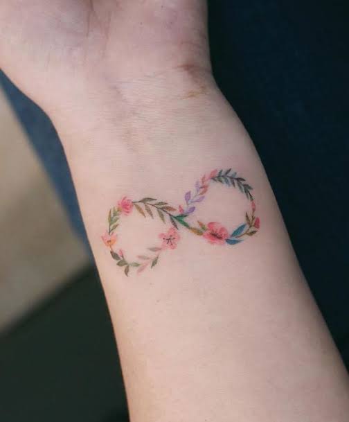 Los tatuajes de infinito coloridos, son una gran opción puede brindarle más vistosidad sin caer en sobrecargar el diseño, se ven realmente lindos.